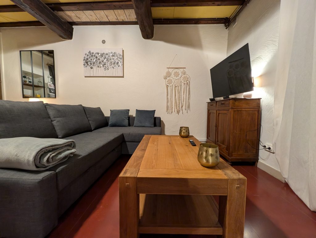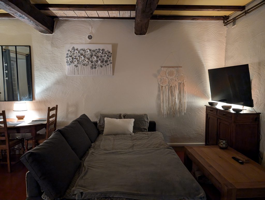 Nous pouvons accueillir jusqu’à 4 personnes (une chambre principale, et un couchage d’appoint sur le canapé convertible du salon)